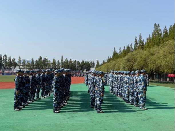 几天前,初入训练场的他们,还带着些许青涩与懵懂。而如今,身着海洋迷彩服的学子们,站军姿时如青松般笔挺,目光坚定地望向远方。齐步走训练中,整齐的脚步声在操场上回荡,摆臂高度一致,步伐间距均匀,每一个动作都透着一股严谨与认真。